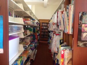 My student workers have been busy re-organizing the BTC Stacks (a.k.a. Textbooks and Teaching Materials or Curriculum Collection) to be in call number order A-Z, left to right. We also had help from our fabulous circulation staff members to reorganize the Box Kits and Bag Kits in the same fashion. Previously, the stacks ran Z-A. For those of you who knew exactly where your favorite item was on the shelf, the new organization will take a little bit of time to get used to. For those of you to whom the BTC Stacks were a mystery, we hope this makes finding things a bit easier! Take a look at the pictures below to see the changes.